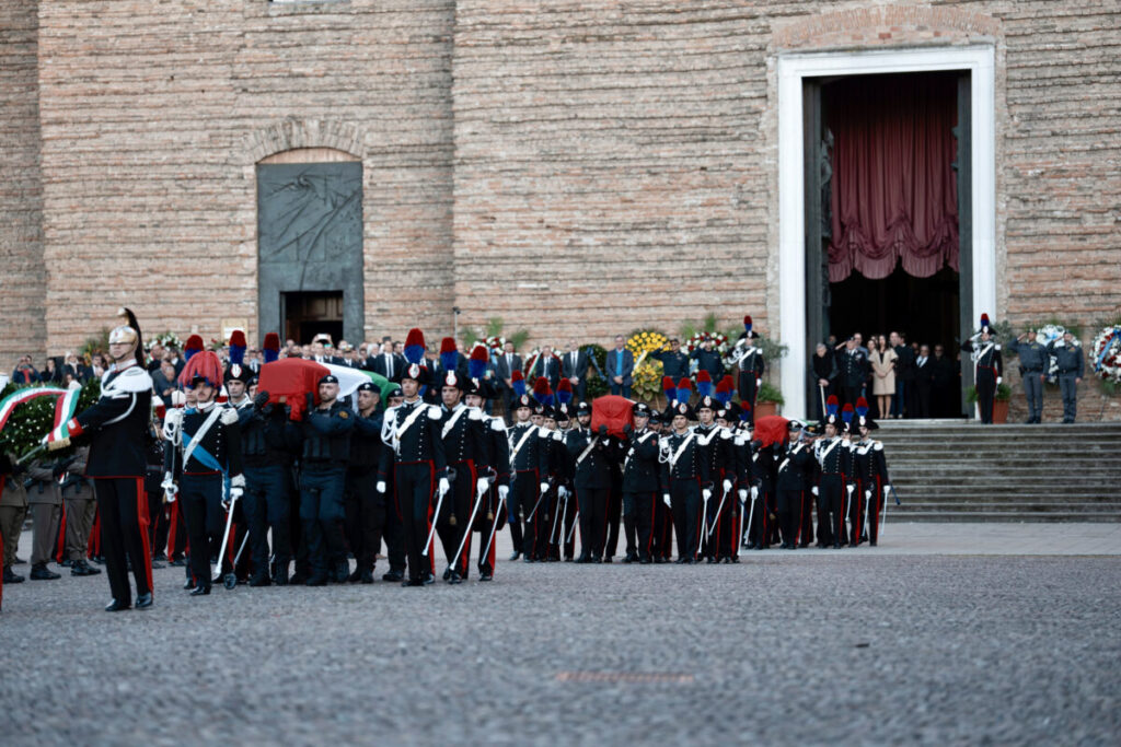 Quando i tre feretri hanno lasciato la basilica, la folla si è alzata in piedi. Un lungo applauso ha accompagnato il passaggio delle bare, portate a spalla e seguite dal picchetto d’onore. Davanti, la corona di alloro del Presidente della Repubblica, portata dai corazzieri. In piazza, cittadini comuni, colleghi e familiari si sono uniti in un unico, profondo silenzio. Un momento di commozione collettiva che ha attraversato le mura della chiesa e si è allargato fino alla città intera.